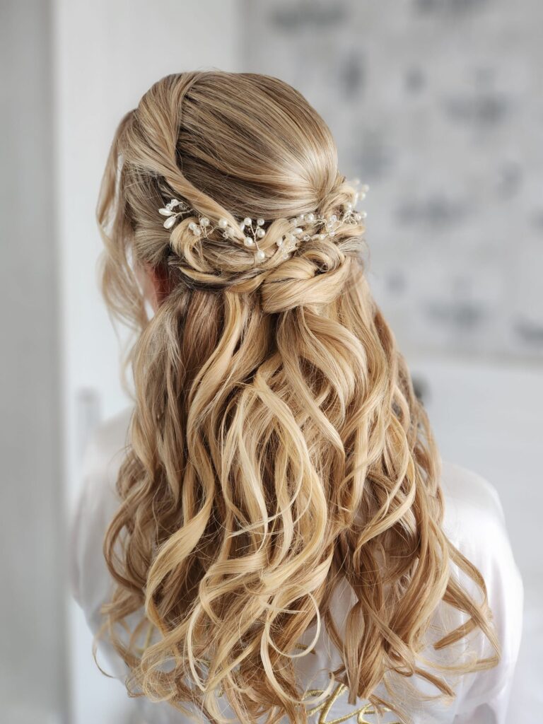 Kortom, een half opgestoken trouwkapsel biedt de perfecte balans tussen elegantie en comfort. Het is een veelzijdige keuze die bij veel verschillende bruiden past en altijd een verzorgde, romantische uitstraling geeft.