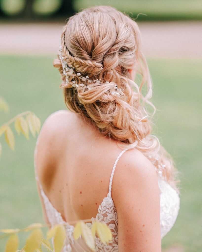 Of je nu kiest voor een klassieke invlecht die strak en verfijnd oogt, een losse bohemian vlecht die speels over de schouder valt, of een romantische combinatie van krullen en vlechten: iedere look vertelt een eigen verhaal. Vlechten geven bovendien de mogelijkheid om bloemen, pareltjes of subtiele haaraccessoires in het kapsel te verwerken, waardoor er een extra persoonlijke en unieke touch ontstaat.