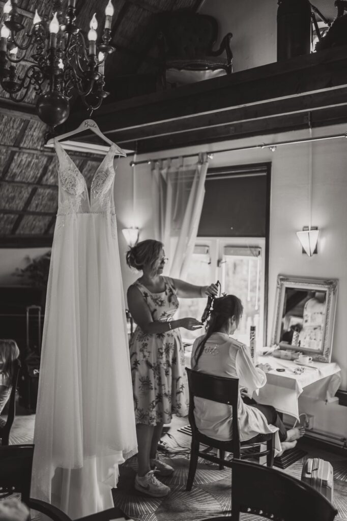 Toch vond ik het een beetje spannend op de dag zelf, ik doe dit werk al meer dan 20 jaar en altijd gaat het super goed en nu uiteraard ook maar als het dan je beste vriendin is staat er toch net wat meer druk op ofzo, heel gek. Maar goed ik ken haar natuurlijk super goed dus ik wist precies welke look het beste zou passen bij haar. Fris maar met heldere kleuren en uiteraard mochten er flink wat extensions in om haar haar te verlengen en volume te geven, want we gingen bij haar voor een elegant kapsel naar de zijkant zodat haar haar nog steeds goed te zien was in combi met de sluier.