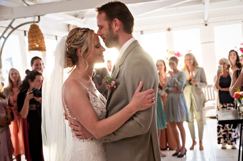 Dit type trouwkapsel blijft de hele dag mooi zitten, van ceremonie tot feest. Zo kan de bruid volop genieten zonder zorgen over haar kapsel.