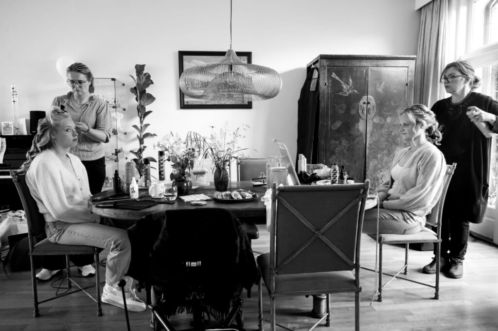 Bij Fleurtje zorgden we voor een zachte textuur en een vlecht langs de zijkant, wat het kapsel speels én verfijnd maakte. Het resultaat straalde frisheid en elegantie uit, precies passend bij haar trouwlook.