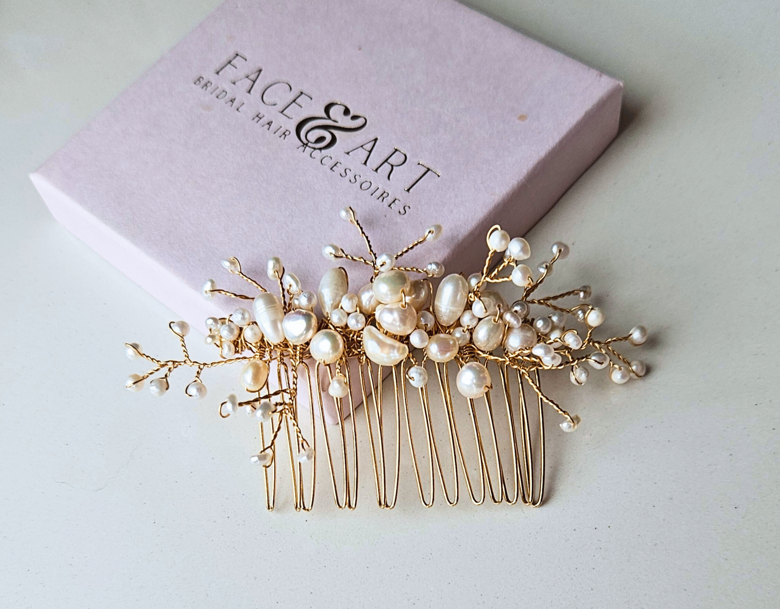 feestelijke haarkam? Deze handgemaakte haarkam met echte zoetwaterparels geeft jouw kapsel direct een luxe en verfijnde uitstraling. Elke parel heeft zijn eigen vorm en glans, waardoor je een uniek stuk in handen hebt. Ideaal voor een bruiloft, gala, feest of andere bijzondere gelegenheid.