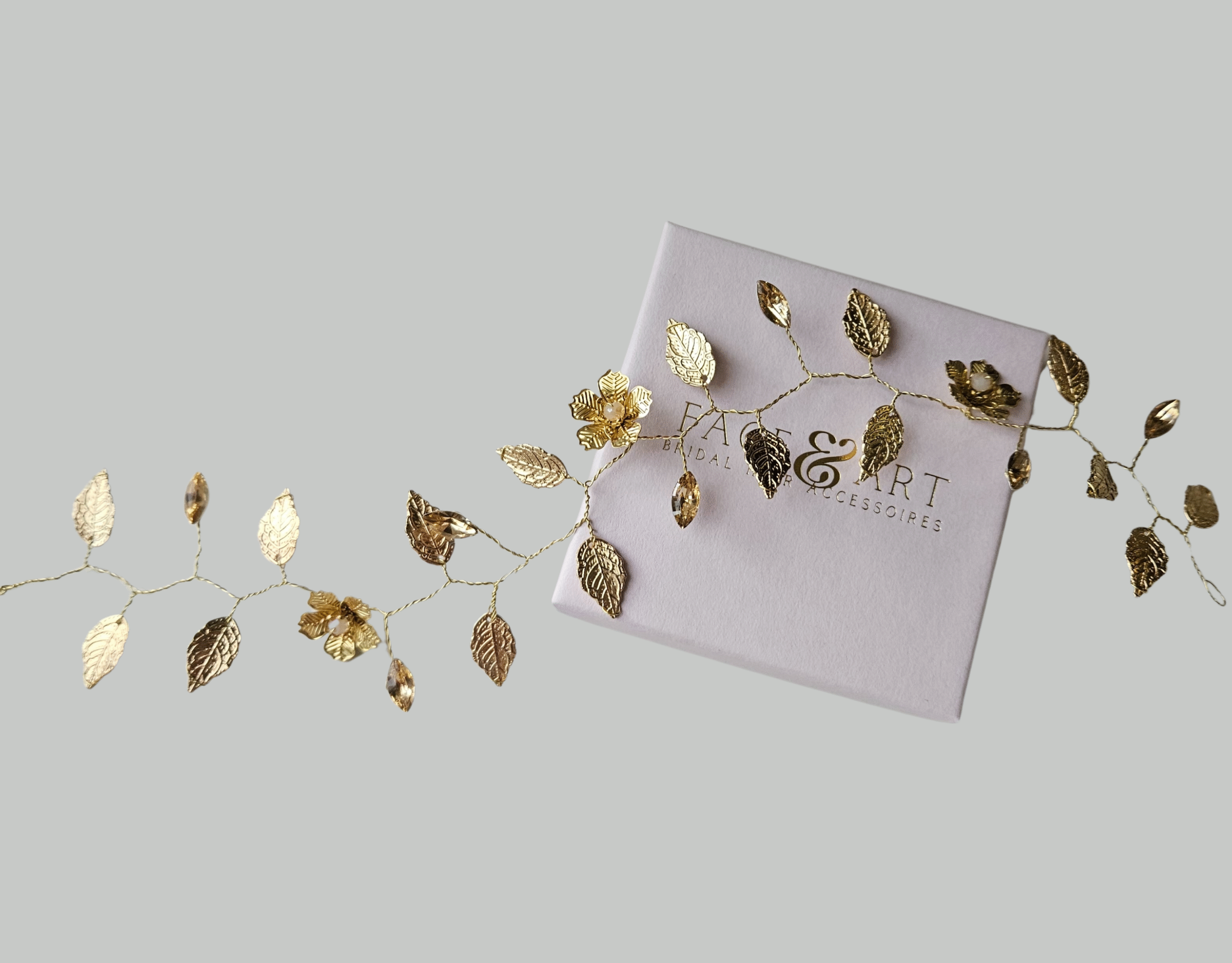 Kortom: met deze handgemaakte golden hairvine geef je elk kapsel een elegante en romantische afwerking. Voeg dit prachtige haaraccessoire vandaag nog toe aan je winkelmandje en straal tijdens ieder bijzonder moment.